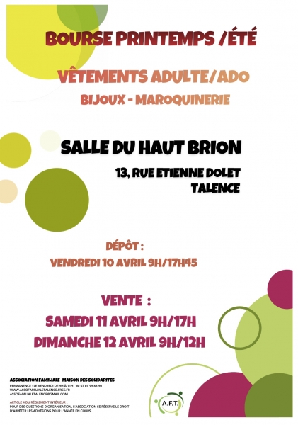 Vendredi 10 Avril 2026Bourse printemps/été adultes/ados